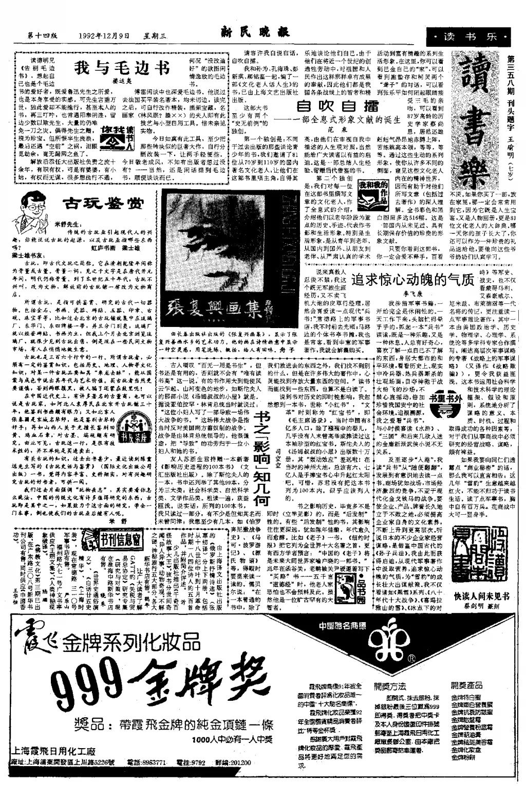 也许米舒先生看后,觉得应该要鼓励一下这个小朋友学习书法的热情,于是,就有了我第一次在《新民晚报》发表的作品:“读书乐”版面的刊头题字“读书乐”。