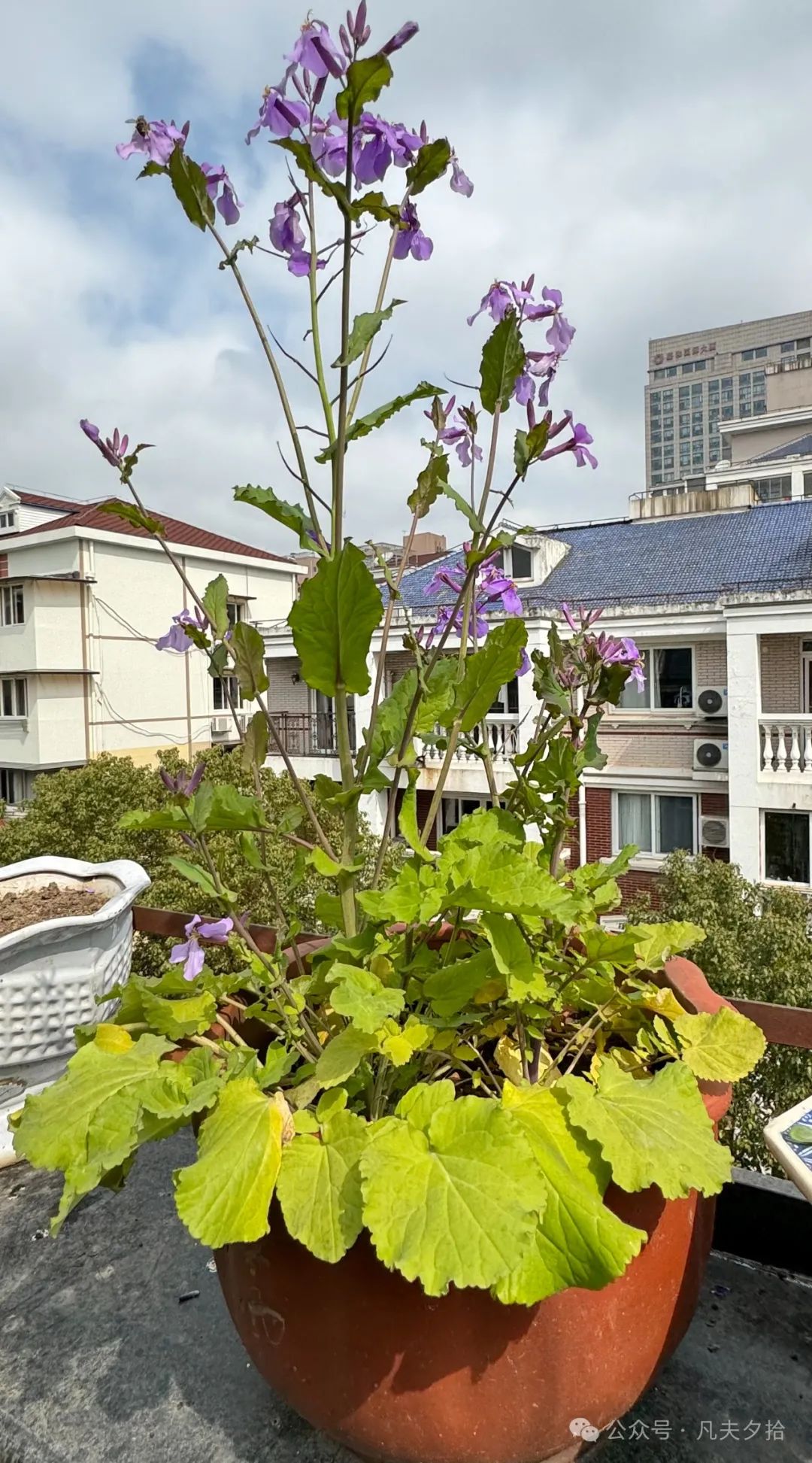栽在我北面露台的这两盆二月兰,还是去年十月长假我与德宝及朱总几个朋友结伴去无锡鼋头渚游玩时,经过在太湖边的一处崖畔下,我无意间发现了一小片久违的二月兰,又见二月兰,特别兴奋。