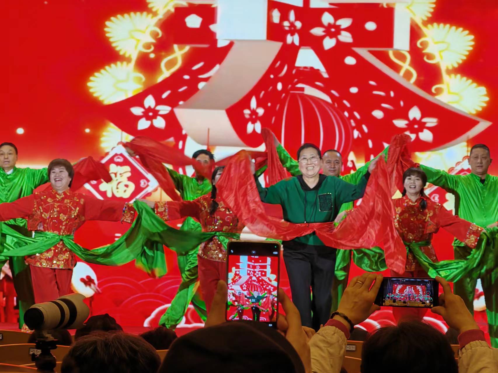 暖流中激起全场深深共鸣的是,在东北大秧歌的欢快舞姿中,山河村的村民们邀请曾经在黑龙江逊克县插队的上海知青一起上台合影。此时此刻,见到来自第二故乡的父老乡亲,不少上海知青顿时眼眶里盈满了激动不已的泪水。