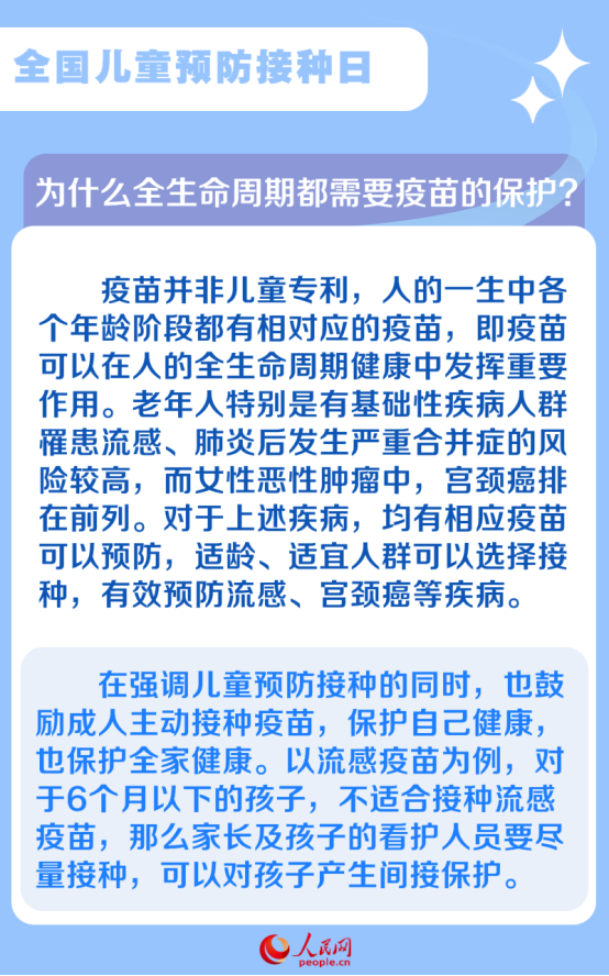2024年4月25日为我国第38个“全国儿童预防接种日”,宣传主题为“共同行动 接种疫苗 为全生命周期护航”。温州医科大学附属第二医院、育英儿童医院儿童预防接种咨询门诊副主任医师余刚在接受采访时表示,对个人来说,全生命周期的健康保护是从接种第一针疫苗开始。