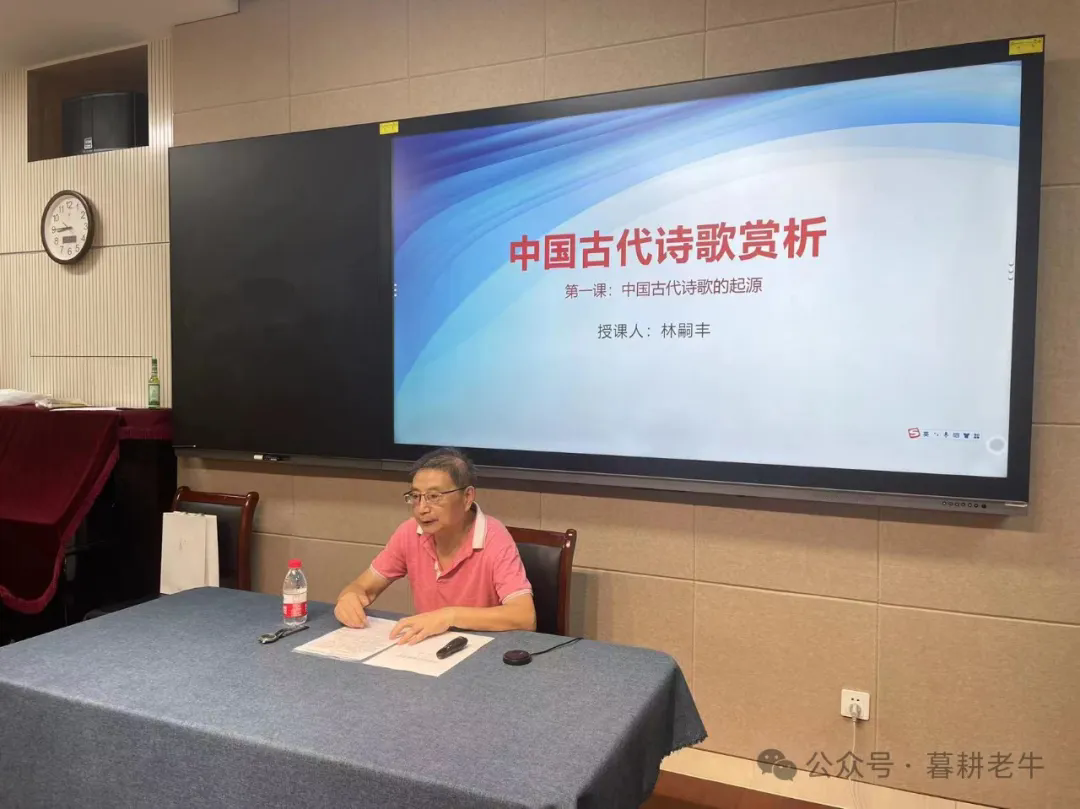 2021年,我从长桥搬到了女儿工作和居住的华泾镇,社区学校得知后,便通过女儿让我在社区学校开设一门新课,即《中国古代诗歌赏析》的课程。由于我的大量存书当时都远在我任教的常州,手头缺少必要的资料,于是我就上网查找,加上以前储存在脑子中的记忆,从诗歌的起源到明清诗歌为止,删繁取简,还是足足备了二十八节课。后又根据学校课时的限制,缩成了二十四节。不巧的是,刚刚要开始上课,疫情暴发了,线下上课无法进行,只能上网课,也因课时限制而仅仅上了十节课,成了“烂尾”工程。疫情过去后,因为报名人数的不足,春秋两季都未开成课。毕竟此课内容属于比较高雅,属于“阳春白雪”之类,需要有一定的文学基础,未能报足人数,也是可以理解的。就在我认为“曲高和寡”不用再开课时,今年初,学校办公室突然通知我春季班已报足,可以开课了,看来愿意提高自己的文学水准、喜欢中国传统文化的老年朋友还是有许多的。从此后开课后的情况看,老年朋友还是十分喜欢这门课的,不少学员文学素养还很高,甚至有学员还给我发来了他创作的古体诗,很有韵味。