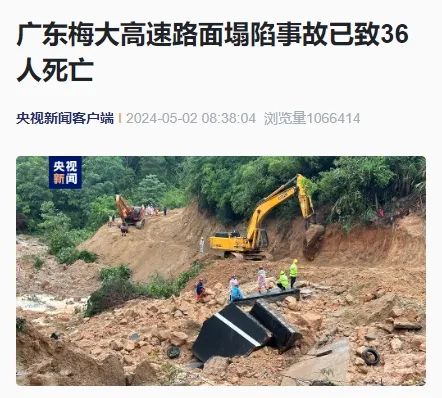 昨天(5月1日)凌晨2时10分许,梅大高速往福建方向K11+900m附近发生高速公路路面塌陷事故。(详情→凌晨突发!一地高速塌方,18辆车被困31人送医!网友:"距离死亡就100米")
