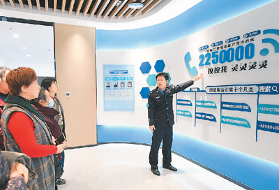 浙江省湖州市吴兴区爱山街道警务人员向群众介绍网络反诈知识。 新华社记者 翁忻旸摄