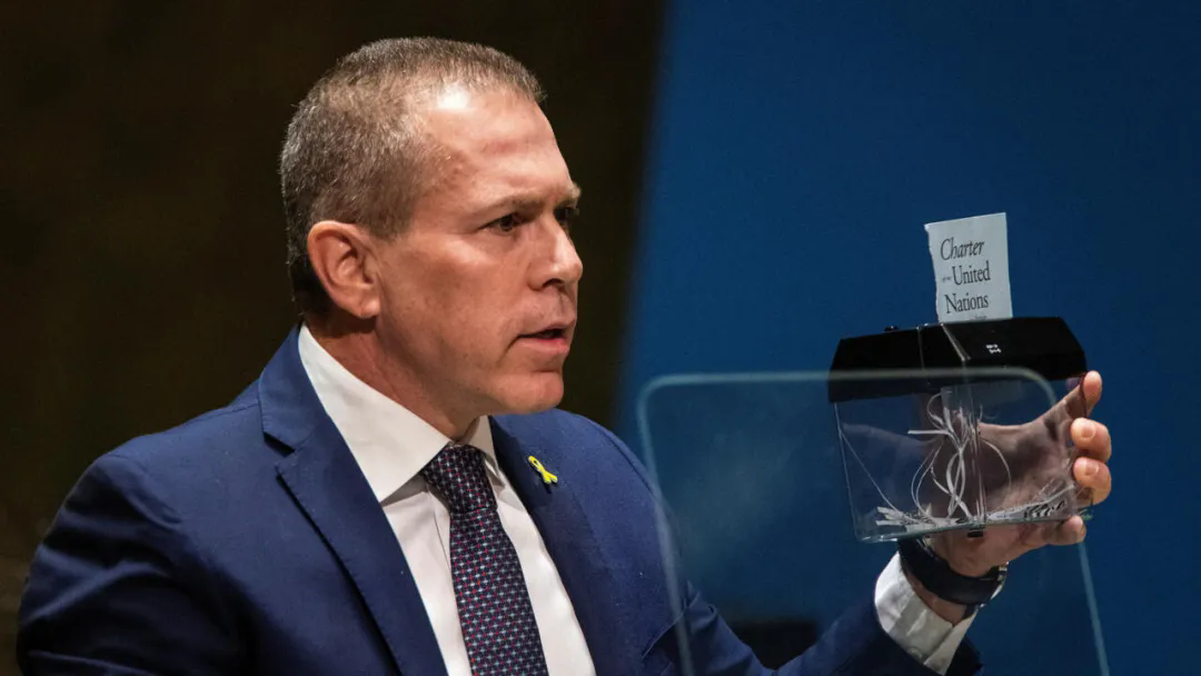 5月10日以色列驻联合国大使用便携式电动碎纸机销毁了一张印有《联合国宪章》标题的纸,这是对国际社会的狂妄挑衅(以色列:你的名字叫“太过分”)