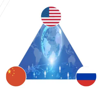 二战后的世界政治格局,是美国、苏联(俄罗斯)、中国的“三角博弈”。二战结束后,先是中苏结盟对抗美国(朝鲜战争、冷战),然后是中美合作孤立苏联。