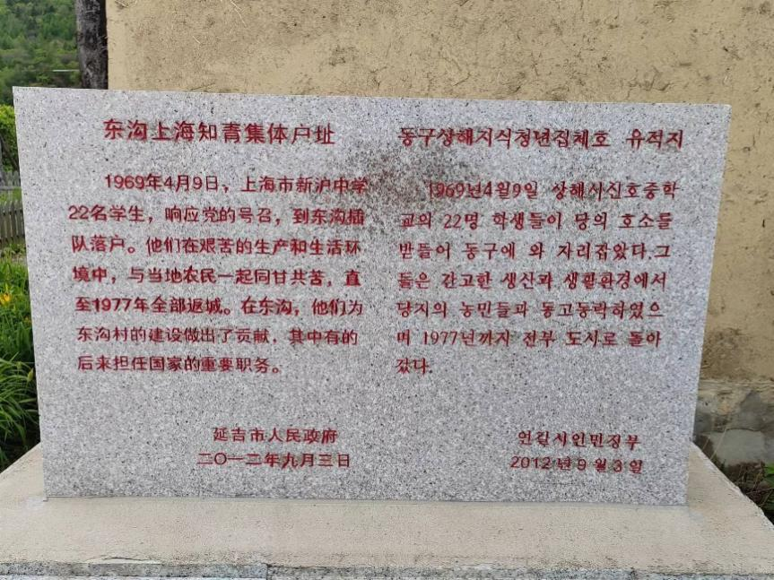 村委会马路对面就是东沟上海知青集体户。集体户门上红漆书写着“上海知青集体户”七个大字。