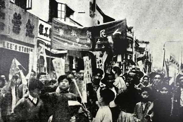 学生游行队庆祝上海解放(1949年5月25日淮海中路茂名路) 舒宗侨 摄