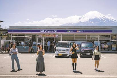 今年,富士山附近的一家便利店因景观独特,在社交平台上走红。游客们蜂拥而至,只为在这个天然的点位打卡拍照。因人流量过大,当地政府近日还拉起一道“黑网”将山景屏蔽,以阻挡游客聚集拍照。