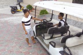 马先生说:“我觉得120元的那个划算,就在售票员的指引下下了车。”随后,记者与马先生一同跟随男向导前往游玩点。穿过马路,走下路边廊梯后,可见一辆3排座椅的4轮电瓶车停在路边。上了车后,向导驾车在村中巷子里绕了5分钟左右,视野便豁然开朗,大海和沙滩呈现在眼前。