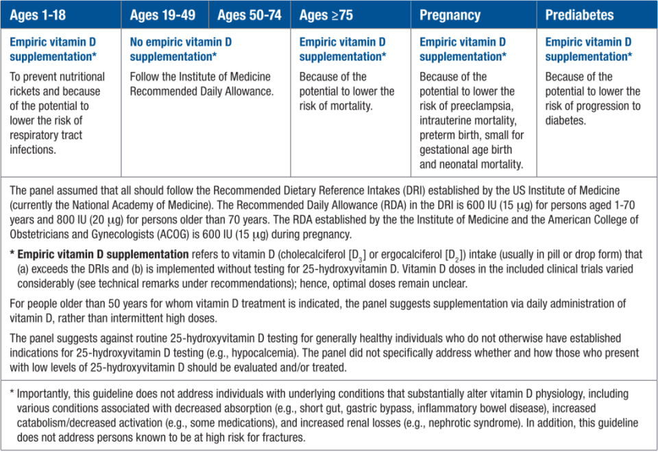 该指南的另一重要变化是不再认可25(OH)D的分级阈值,并不建议对25(OH)D进行常规筛查。这意味着专家小组认为,没有必要依赖于固定的分级系统来决定维生素D的补充量,而应根据个体的具体情况和潜在的健康益处来考虑。