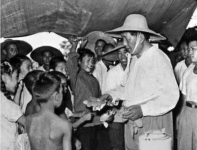 主席带领中国人民依靠集体力量,兴修水利,建立了星罗棋布的灌溉网络,基本实现了遇旱有水,遇涝排水,为解决粮食的自给自足创造了良好的条件。几千年不能解决的普通的水灾、旱灾问题,在短短的二十多年里,得到了根本性解决。那个时候,谁见过老百姓向龙王祈雨?都是靠伟大的群众运动。