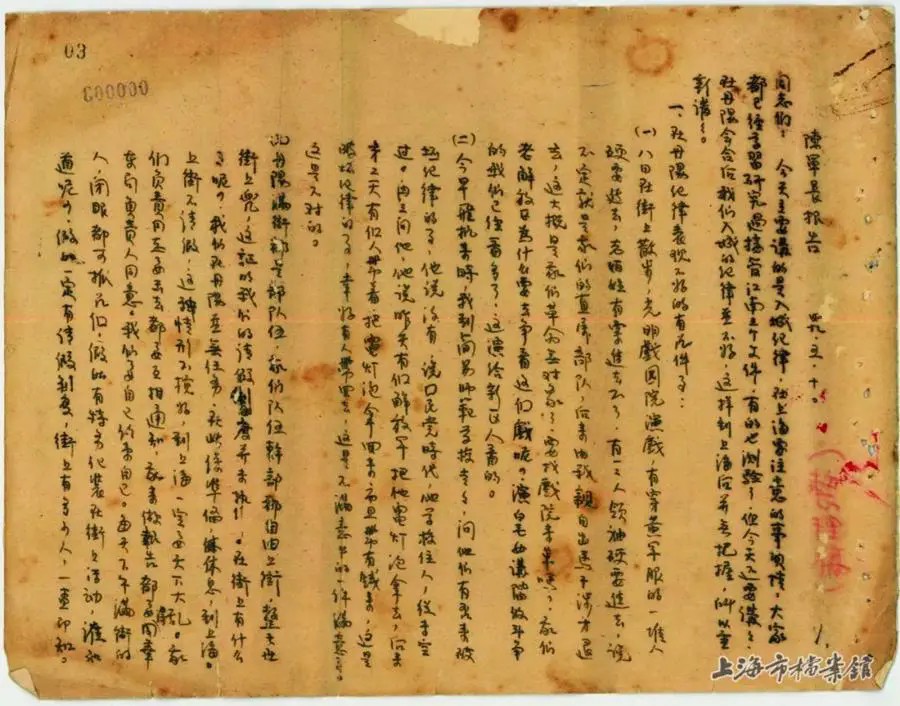 丹阳集训,陈毅就入城纪律问题发表的重要讲话(上海市档案馆藏)
