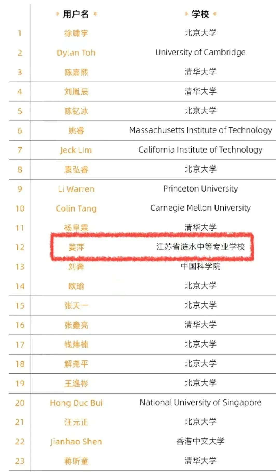 不了解数学竞赛圈的人,可能对第12名缺少认知。