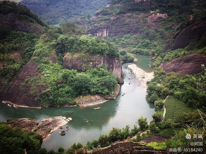 这条曲曲弯弯的溪水美的纯真……滴滴雨露轻落在叶上草上,渗入根土中,然后沙滤石挤,再流出涓涓细流,又由无数细流汇成这能漂筏行船的大河。所以这水就轻软得可爱。没有凶险的水涡,没有震山的吼声,只是悄悄地流,静静地淌,逢山转身回秋眸,遇滩摄足曳翠裙……在这种人仙参半的境界中,我细品着溪水的清、凉、静、柔,几时享受过这样的温存与妩媚呢?回想与水的相见相识,那南海的狂涛,那天池的冰冷,黄河壶口的“虎啸”,长江三峡的“龙吟”,今天我才找到水之初的原质原貌,原来她“最是那一低头的温柔,不胜凉风的娇羞”……一处美的山水就是一个暂栖身心的港湾,王维有他的辋川山庄,苏东坡有他的大江赤壁,朱自清有他月下荷塘,夏丏尊有他的白马湖,今天我也找到了自己的武夷九溪。