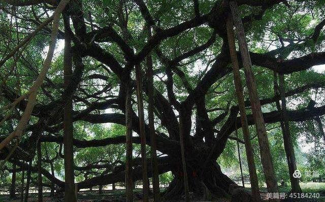 天星桥的树以榕树为多,叶大荫浓,满谷绿风。这里的树常会变出许多的形。有一株叫“民族大家庭”,一从石中钻出即分成五十六根树干,大家就一根一根地去数。