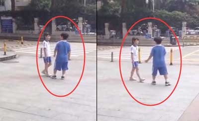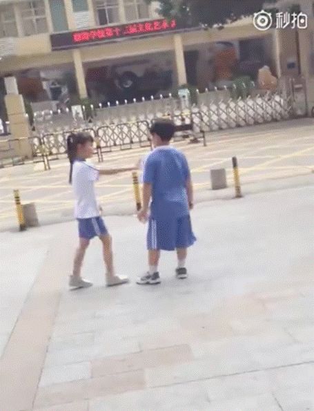 小学生当街闹分手:给你充Q币吃辣条 你说分手就分手