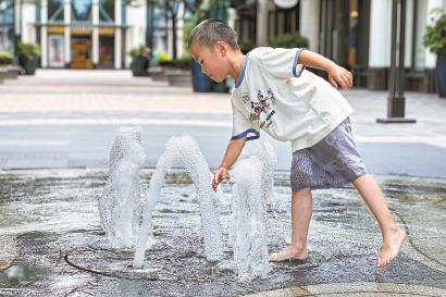 昨天上海中心城区最高温定格在36.3℃。在浦东新区,一名小朋友在玩水降温。 本报记者 赖鑫琳 摄