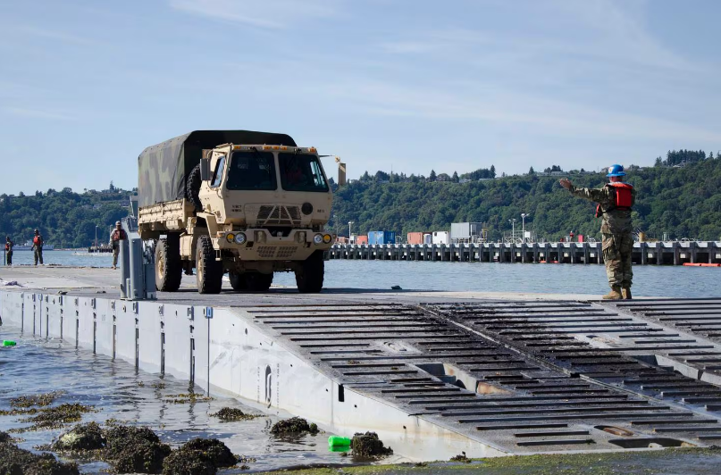 此外,在浮动的码头上运输大型集装箱本身就具有相当大的风险。一名退休的美军海军上尉告诉《海军时报》,“即使是最好的条件下,想在漂浮的海上环境中移动40吨和20吨的集装箱,任何事情都可能发生。有人可能会被撞、掉入水中或者发生致命事故。”五角大楼官员也承认,运送救援物资的卡车是否能胜任这项艰巨的任务也值得担忧。“对于一个没有经过军事专业训练的普通卡车司机来说,他以前可能从来没有在这样狭窄的栈道上开车运输,的确存在相当风险。”报道称,组成码头和栈道的预制件会随着海浪各自起伏,卡车在上面行驶时必须适应这种不断变化的“动态道路”。