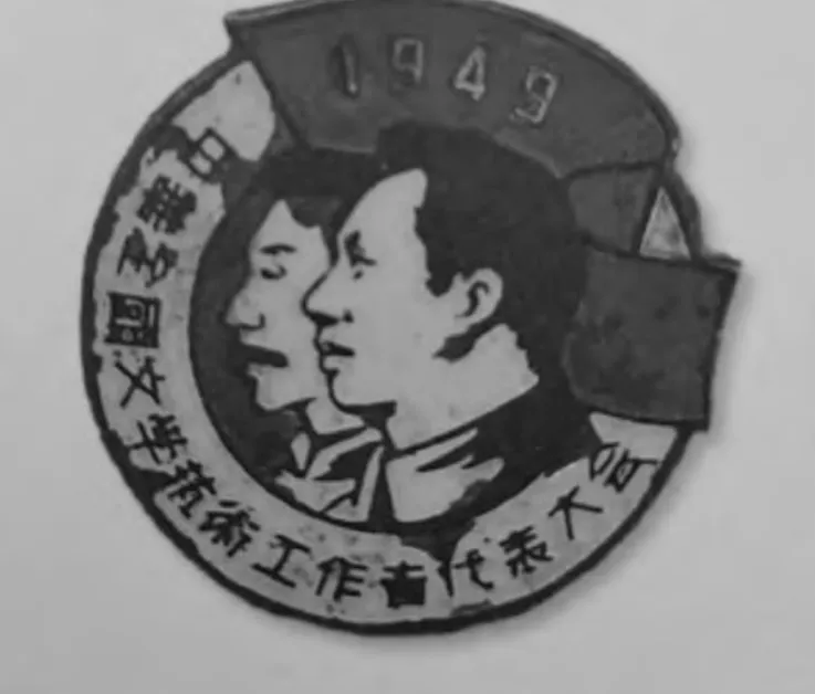 1949年中华全国文学艺术工作者代表大会徽章(图为毛泽东、鲁迅并列头像)
