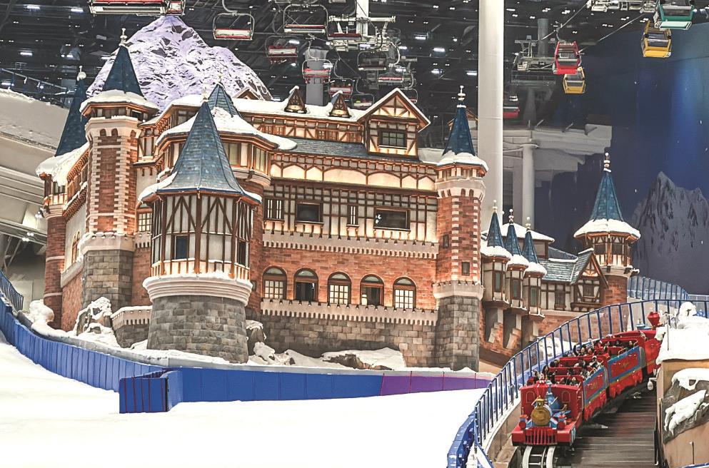 洁白雪花铺满极光小镇、浪漫雪山城堡矗立雪道之间、梦幻的雪国列车缓缓徐行、童趣盎然的欢乐雪域映入眼帘……位于临港新片区的“大冰箱”耀雪冰雪世界内场全貌首次公开。室外酷暑盛夏,走进室内一片冬日风光。本报记者 陈龙摄