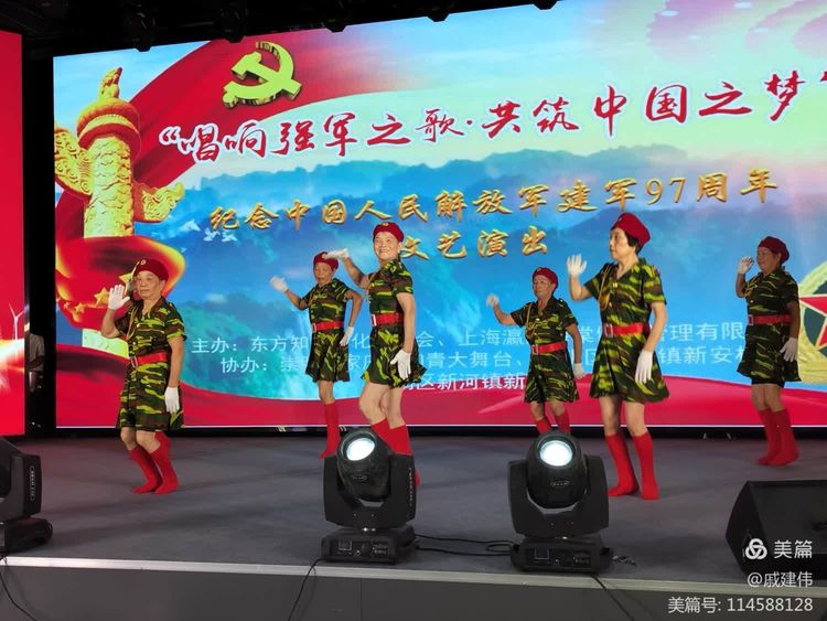 崇明三星镇新安村舞蹈队表演的暖场舞蹈《当兵的就这么帅》