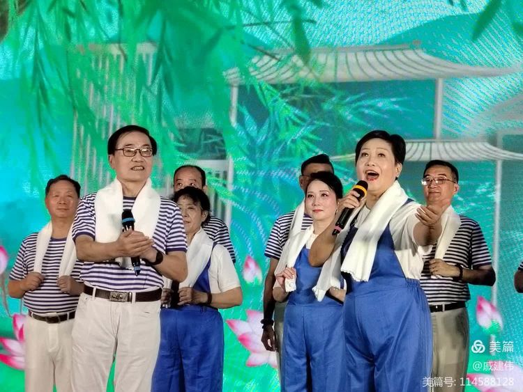 而接下来的演出更是精彩纷呈,从声情并茂、动人心魄的男声独唱、女声独唱;到激情四射、悠扬婉转的男声小组唱、女声小组唱、男女声二重唱;从动感十足、妩媚优美的舞蹈表演;到一招一式、韵味绕梁的京剧、沪剧、越剧演唱;从艺术名家徐伯涛、王珊妹、王宁、傅琍菊的倾情献艺;到红色情景舞蹈《洗衣歌》的经典重现,以及京剧《打虎上山》创意舞蹈的编排;多种艺术表演形式轮番上台,众多足以令人喝彩不已的优秀表演者,让扶老携幼前来观摩的村民大饱眼福,赢得全场阵阵掌声。演出在李向荣老师指挥下,在全场大合唱《歌唱祖国》歌声中进入了最后的高潮。