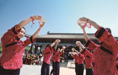 在甘肃省陇南市西和县,几名演员在表演传统“乞巧”民俗改编的舞蹈。 新华社 发
