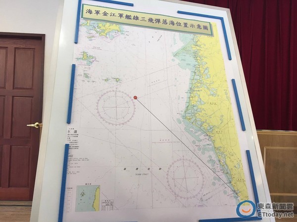 海军公布金江舰雄三飞弹落海位置示意图。(图/记者杨佳颖摄)