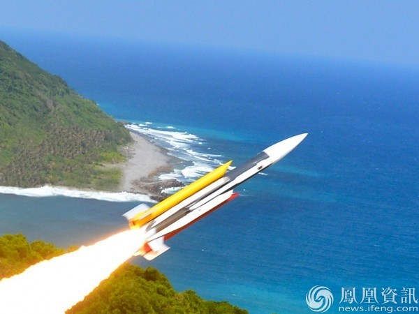 雄三导弹发射模拟图。(图片截取自台湾中山科学研究院)