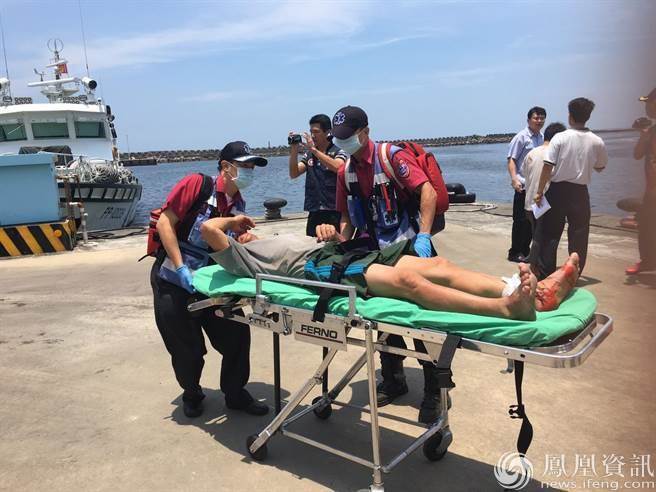 海巡署台南海巡队出动将受伤渔工救回台南,送往市立台南医院救治。
