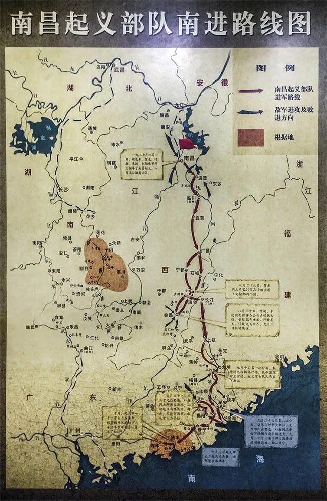 此时,朱德任第9军副军长,后因军长未到职,又升任为第9军军长,这个军的实际兵力只有军官教育团的3个连。当时江西境内防守的都是滇军,考虑到朱德与滇军的渊源,前委委任朱德为先遣队司令,率部为起义部队南下开路。