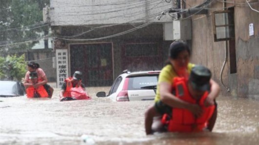 图片说明:7月1日,武汉市遭暴雨袭击。武汉黄陂区城区、前川、六指、鲁台鸭渔村等地部分地区出现齐腰身的积水,多人被困。 中新网图