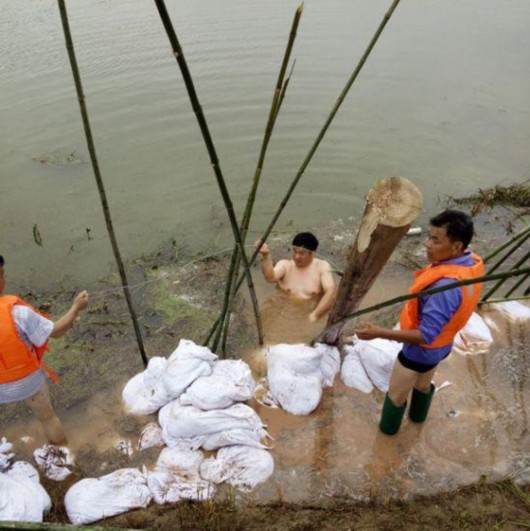 图片说明:近期,安徽桐城普降暴雨,嬉子湖水位已连续多日超警戒水位半米以上。因圩堤遭水多日浸泡和内外圩水位差过大,6月30日,西河圩蟠龙段发生圩堤溃堤险情,嬉子湖镇立即启动抗洪抢险应急预案,短时间内征用民船3只,调运木料30根、编织袋2000条,组织干群100余人参与抢险,从当天上午10点到下午6点,终于抢筑起50余米长的护堤。 安徽网图