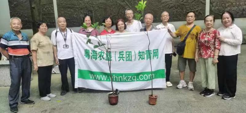 志愿者的上山后的第一件事就是在白云山知青亭的大型周雕塑下拿着粤海农垦(兵团)知青网旗合照。