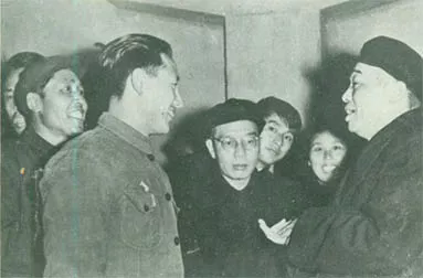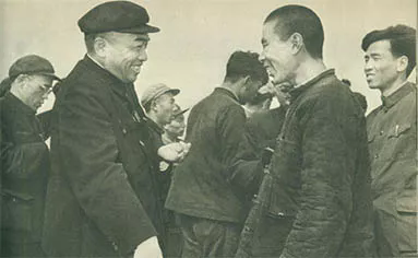 ◆彭德怀视察河南农村时与农民们亲切交谈。