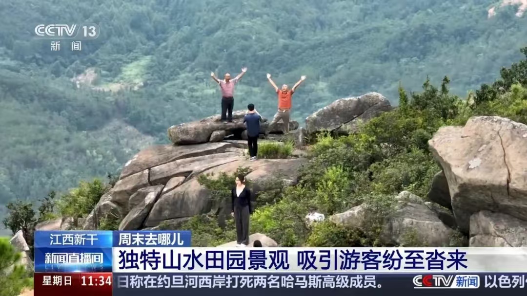 总台记者易文韬现场直播说:“我现在所处的位置,就是位于江西吉安新干县的燥石山。这里是一座完全没有被开发过的原生态地质公园,在平均海拔1000米的山顶之上,平均气温只有23°C。伴随着山间的清风,在体感上可以说是非常的清凉。