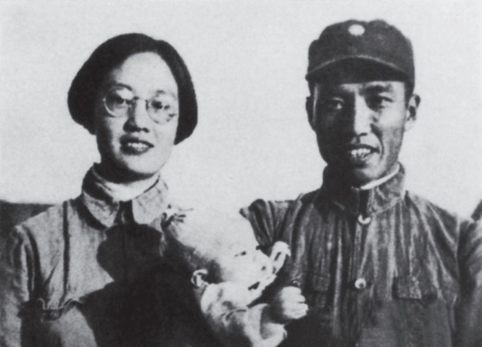 1940年8月,在山西武乡县砖壁村,左权和夫人刘志兰及女儿左太北照的唯一一张全家福