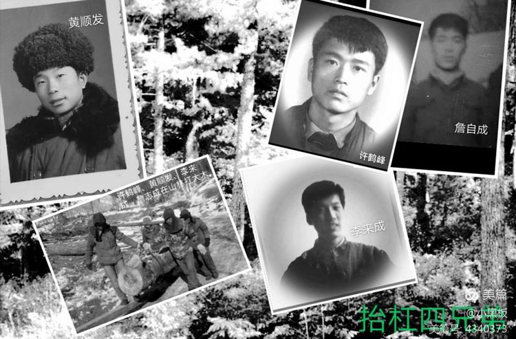 我们四个人互相抬杠又互相帮弱者,林场职工称我们快乐的抬杠四兄弟。
