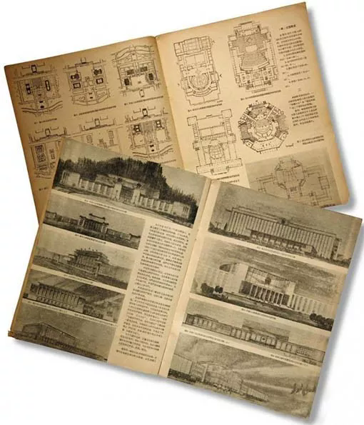 ◆为了设计大会堂,工人、学生、教授,以及西安市设计院、清华大学建筑系等全国各地的设计单位纷纷献计献策。短短一个月的时间,就提出了84个平面方案和189个立面方案,图为他们拿出的平面图(下层图)和立面方案(上层图)。