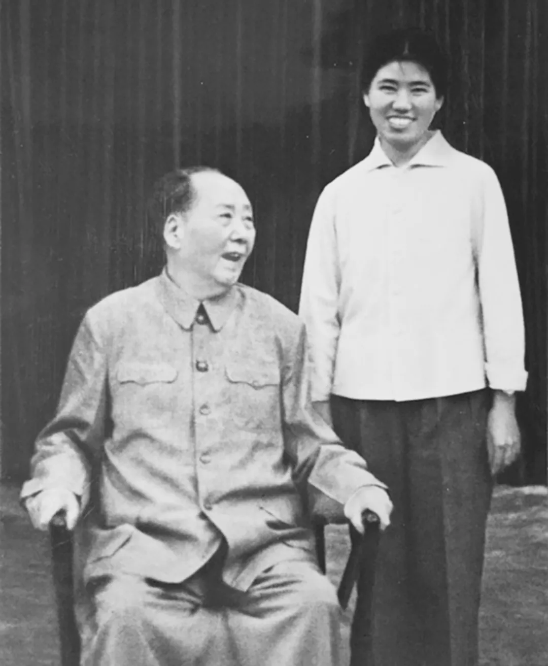◆晚年毛泽东和服务人员合影。
