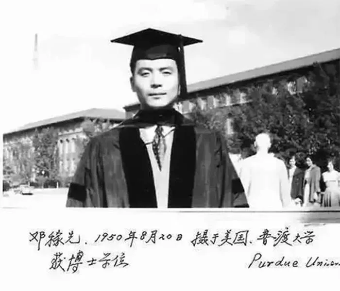 邓稼先在北京大学教学,待遇很好,以他的学术造诣,在北京大学,教学顺手,前途广阔。但胸怀报国之志的邓稼先却不这样想。他想的是,要到科学水平更高的美国去,学习更先进的知识,掌握更先进的知识后,报效祖国。出于这种考虑,1947年,他参加了赴美研究生考试,一考即中,当年,他收到了美国普渡大学(Purdue University)物理系的录取通知书。第二年秋天,邓稼先远渡重洋,到美国印第安那州的普渡大学研究生院物理系读研究生。这年,他24岁。