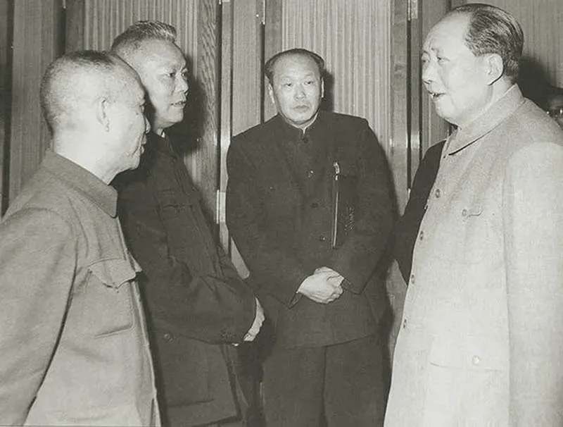 ◆1962年,李先念在中共中央扩大的工作会议期间,与毛泽东、李富春、乌兰夫在一起。