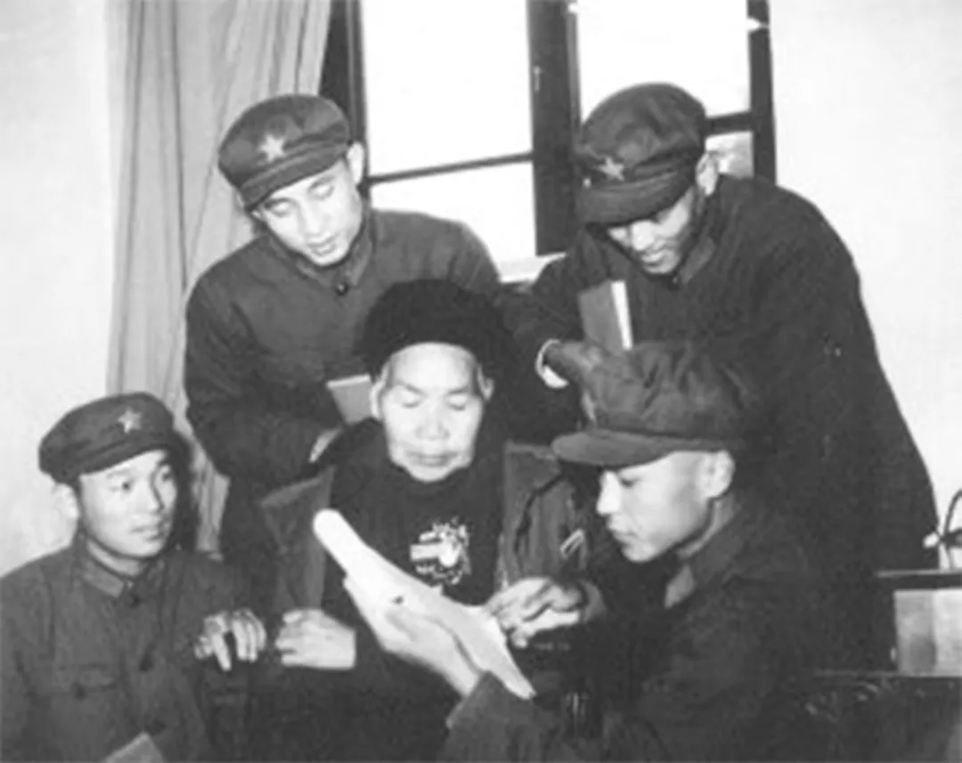 ◆1969年,张思德的养母刘光友来警卫1师看望张思德生前的领导和战友们。