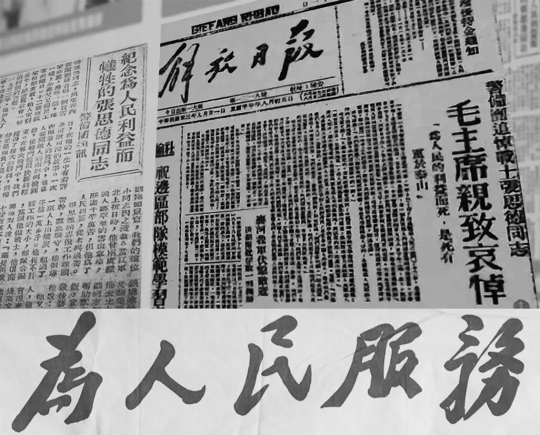 1944年,张思德在挖窑烧炭时突遇坍塌事故,为救战友而壮烈牺牲,年仅29岁。毛泽东专门指示要给张思德同志举办追悼会,并亲笔题写了“向为人民利益而牺牲的张思德同志致敬”的挽联。会上,他发表了《为人民服务》的著名演讲,高度评价了张思德同志全心全意为人民服务的革命精神。张思德在他短暂的11年革命生涯中,打过仗,负过伤;开过荒,烧过炭,哪里有需要就到哪里去,从战士到班长,又从班长到战士,任劳任怨,性情坚韧,处处关心他人重过关心自己,在普通岗位上铸就出伟大精神,无愧于为人民服务的平凡英雄。