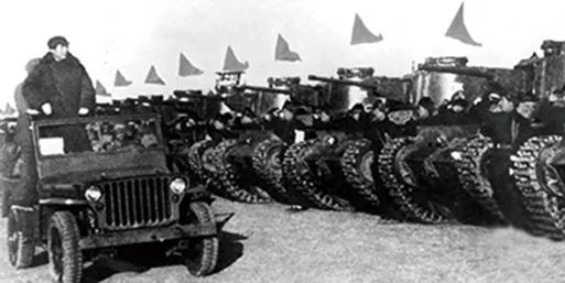 3 月 22 日,四野派来的 100 辆美国制造的十轮大卡车、十几辆中型和小型吉普车,分别从北平和天津驶进了西柏坡。据当时担任第四野战军汽车三团团长、后曾任总后勤部车船部部长的蒋泽民回忆:“3 月 20 日,四野总部来了命令,让我们团派车去河北省西柏坡接毛主席和中央直属机关进北京,而且要选派政治可靠、有管理才能的干部带队。我找来组织干事,让他把全团司机的档案拿来,从中选出 200 名政治思想好、技术熟练的司机,作为去西柏坡的驾驶员,又挑出1 0 0 台好车。我把这项任务交给曾给李富春开过车的团运输参谋严谒带队。”“3 月 22 日晚,车队到了西柏坡,严谒即找叶子龙联系装车之事。此时,司机全然不知,当第二天早上装车时,司机才知道接中央首长去北京。大家心花怒放,一边往车上装东西,一边高兴地说‘用我的车接毛主席和中央首长去北京太幸福了!我终生难忘这一天。’”