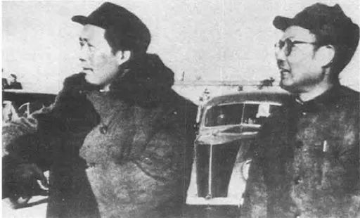 ◆1949年3月25日, 毛泽东同北平市长、北平市军管会主任叶剑英在西苑机场。