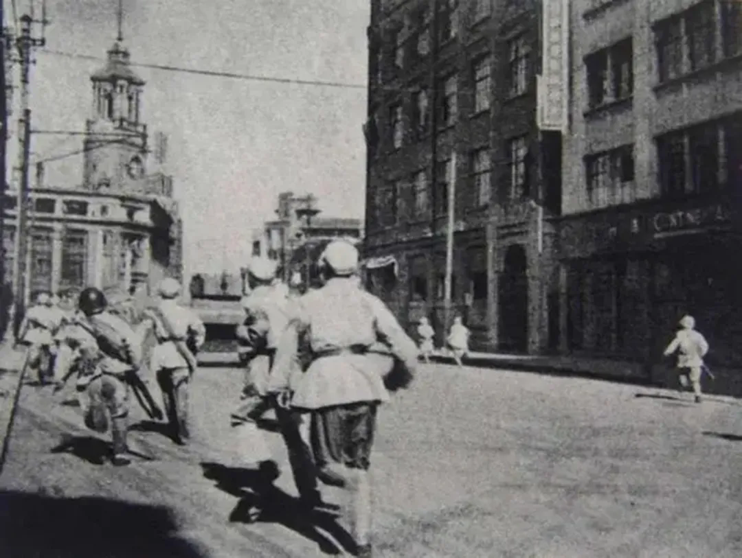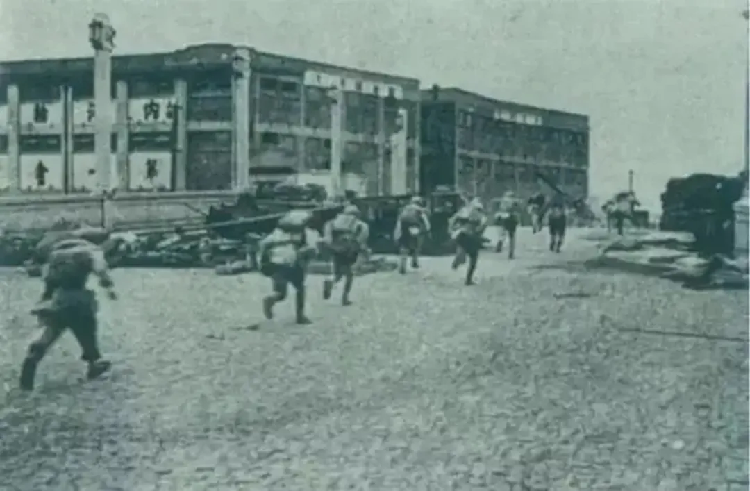 ◆上海战役中,人民解放军向上海邮政大楼发起冲锋。