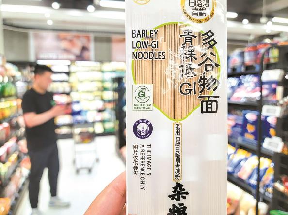上海市场上一款在售的谷物面产品贴有低GI标志