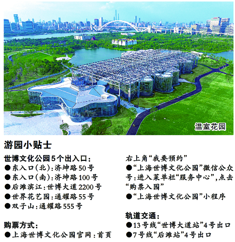 世博文化公园于2017年9月22日开始建设,经过整整七年建设,终于基本建成开放。公园北区率先于2021年12月31日对外开放,已接待游客538万人次。此次新开放的是公园的南区,包括双子山、上海温室花园、世界花艺园等重点景观项目。其中,温室花园需购票进入。