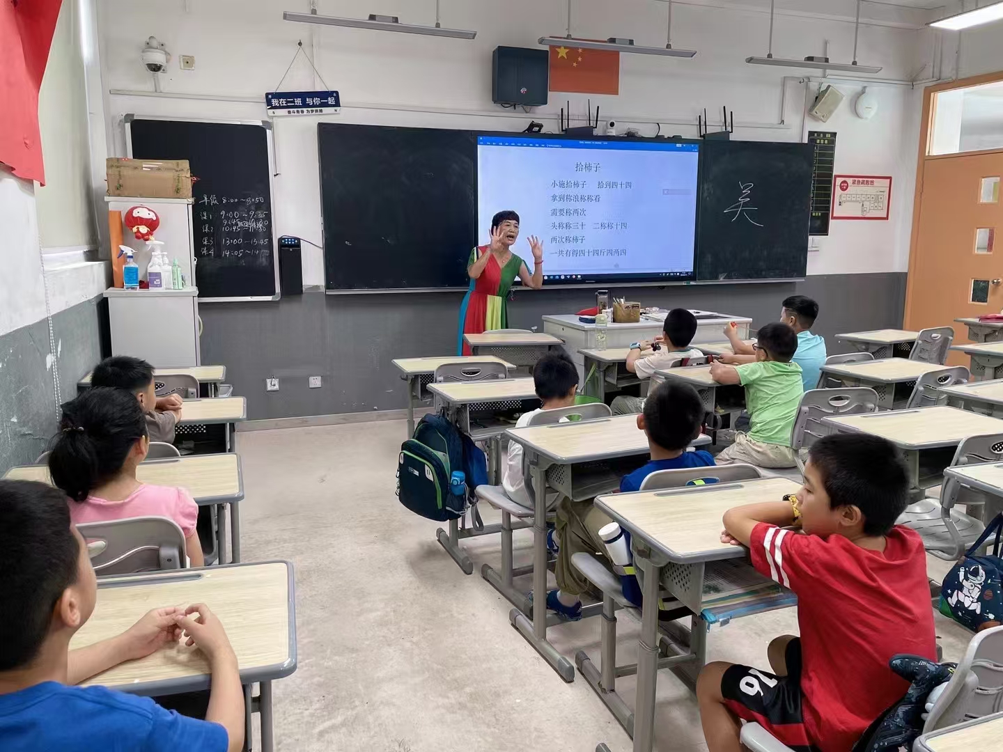 我教的课程:沪语童谣,我的祖籍是上海南汇,是正宗的上海人,教授上海话绝对没问题。暑托班学生中有许多是来自全国各地为建设上海而来的外地打工者子女,孩子们非常热爱大上海,可大多数孩子都听不懂上海话,家里也没有学说上海话的语言环境。让他们听懂上海话、学会上海话、融进上海这座大城市就是我当老师的职责,努力教会他们说上海话,让他们能用上海话与人交谈,最起码要能听懂上海话。